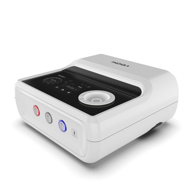 Dispositivo ultraligero y portátil que proporciona la terapia de radiofrecuencia a 448 kHz de INDIBA, garantizando precisión, facilidad de uso y portabilidad para clínicas y profesionales de la salud en movimiento.